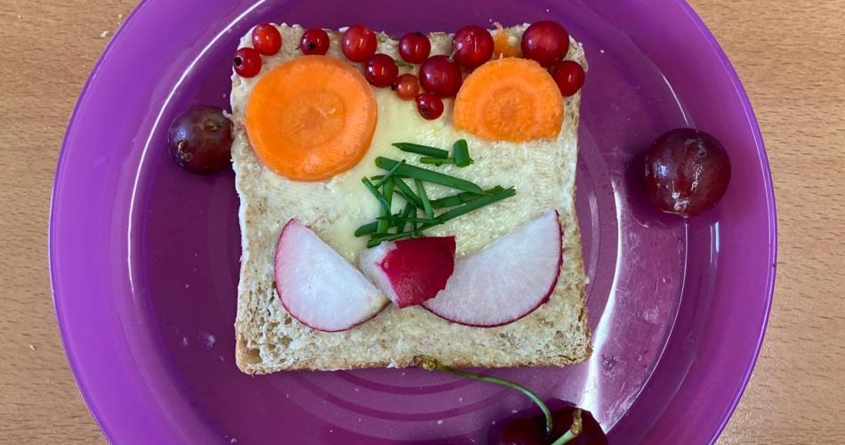 Bunte Toastgesichter - ernten und verkosten 27. Juni 2025 von Claudia EbnerRadieschen, Salat und Kresse aus dem Schulgarten geerntet und wir lassen es uns schmecken!Aber vorher brauchen wir noch eine Unterlage - wir stellen selber Butter her.