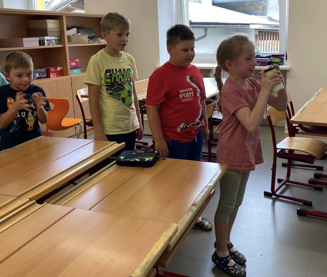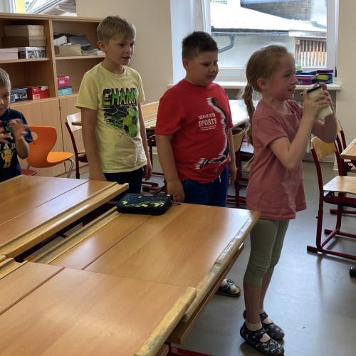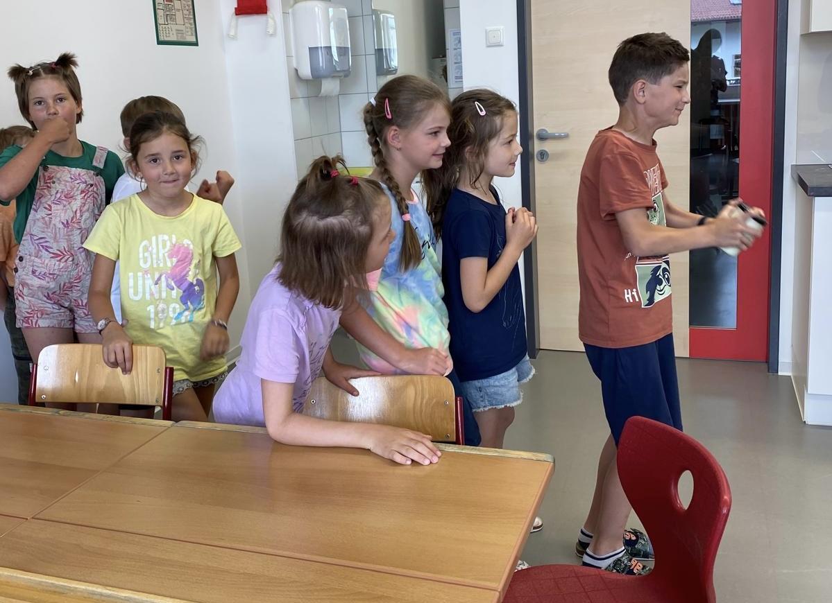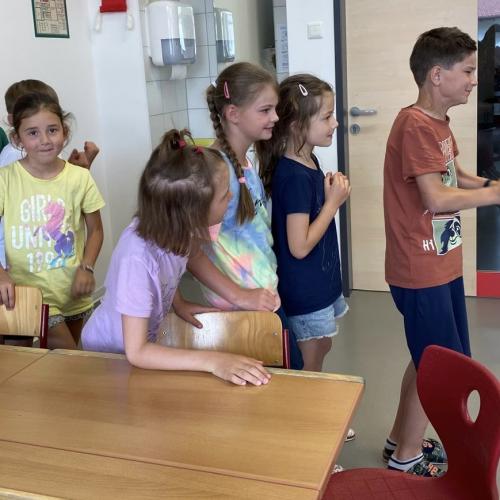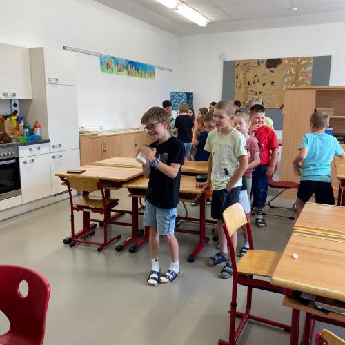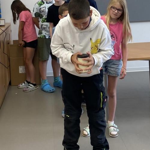 Geduldig wird das geernete Gemüse vom Schulgarten und von Garten unserer Lehrerin Laura Ortner gewaschen und in die passende Größe geschnitten.