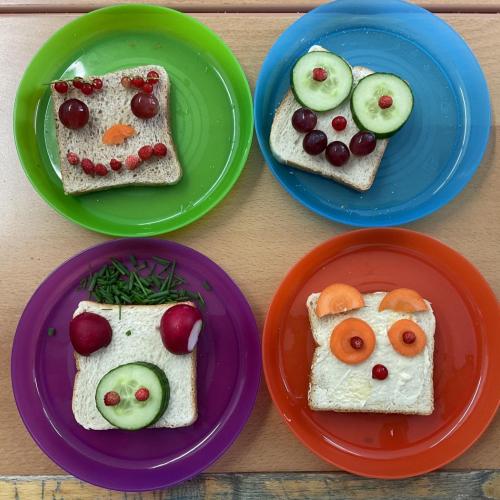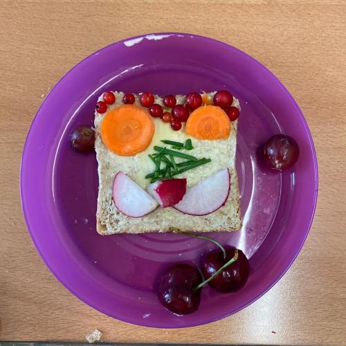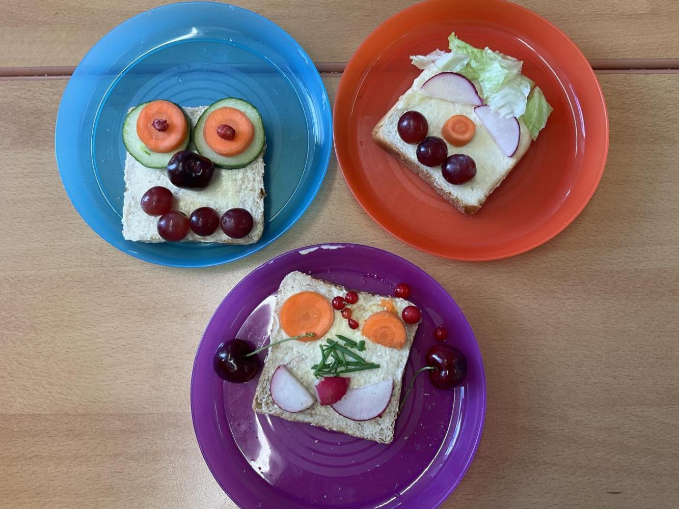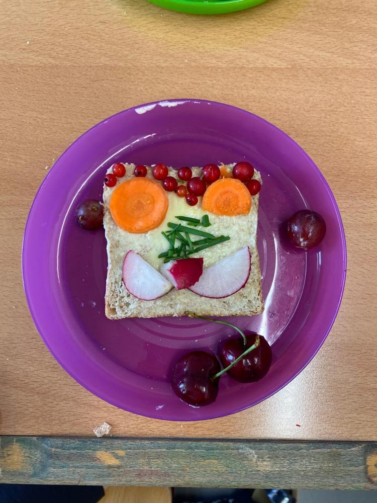 Zusätzlich gekauftes Obst erleichtert das Belegen und Zusammenstellen der Toastgesichter.