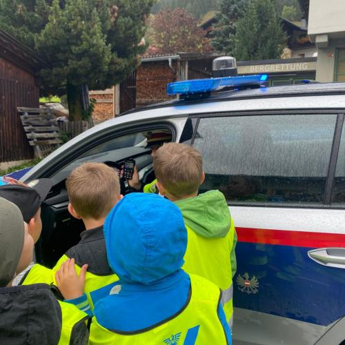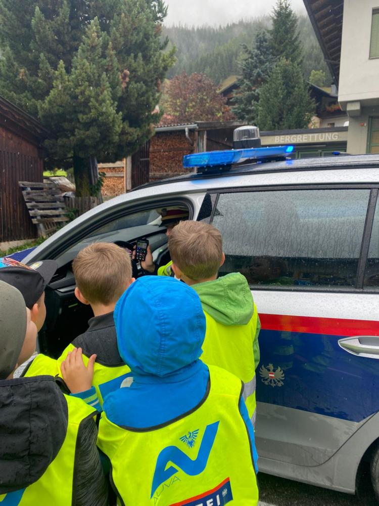 Zum Abschluss dürfen alle Schüler dem Polizei-Warnsignal, dem Folgetonhorn des Polizeiautos lauschen.🔊