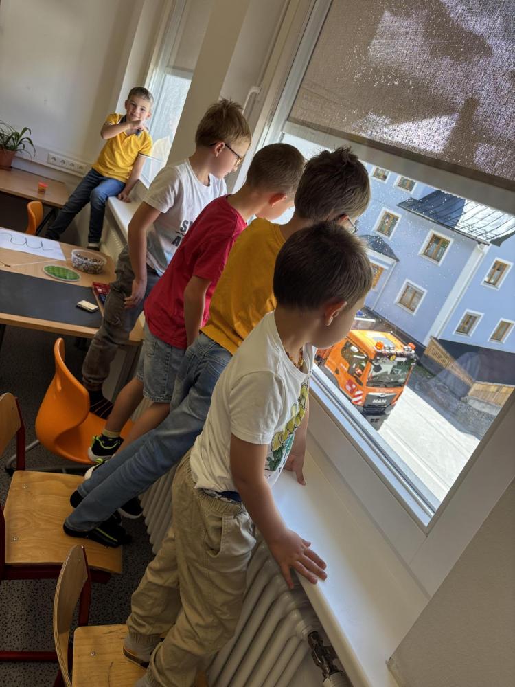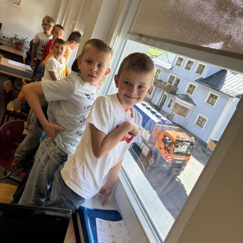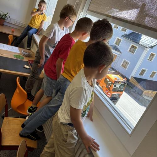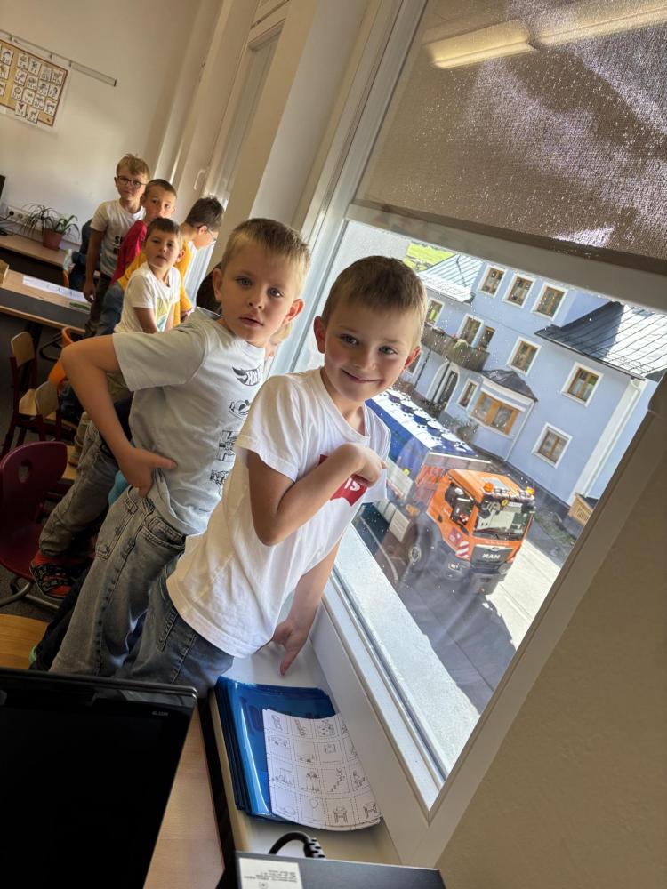 Die SU-Stunde am Klassenfenster von Claudia Ebner 05. Oktober 2025 Da sind unsere 9 Buben aus der 1. Klasse "ganz aus dem Häuschen" und dann aber "voll bei der Sache": Kanalreinigungsarbeiten mit "Lepp” und Asphaltierungsarbeiten beim neuen Wohnblock.Lebensnaher kann man Unterricht nicht gestalten.🤷🏻♀️