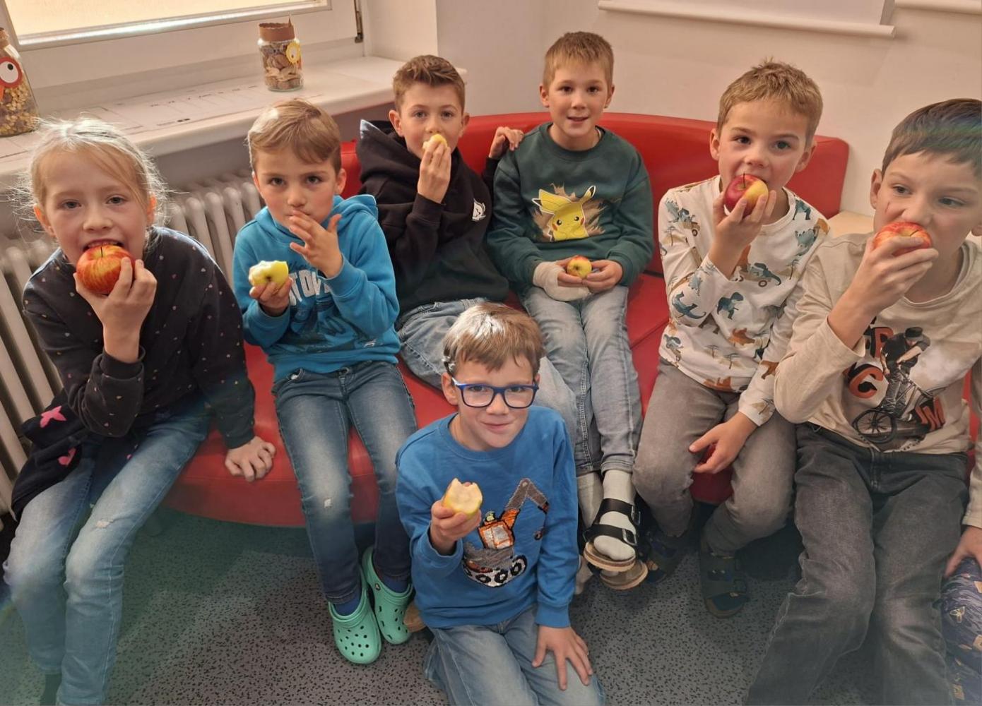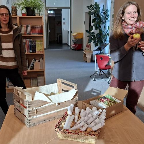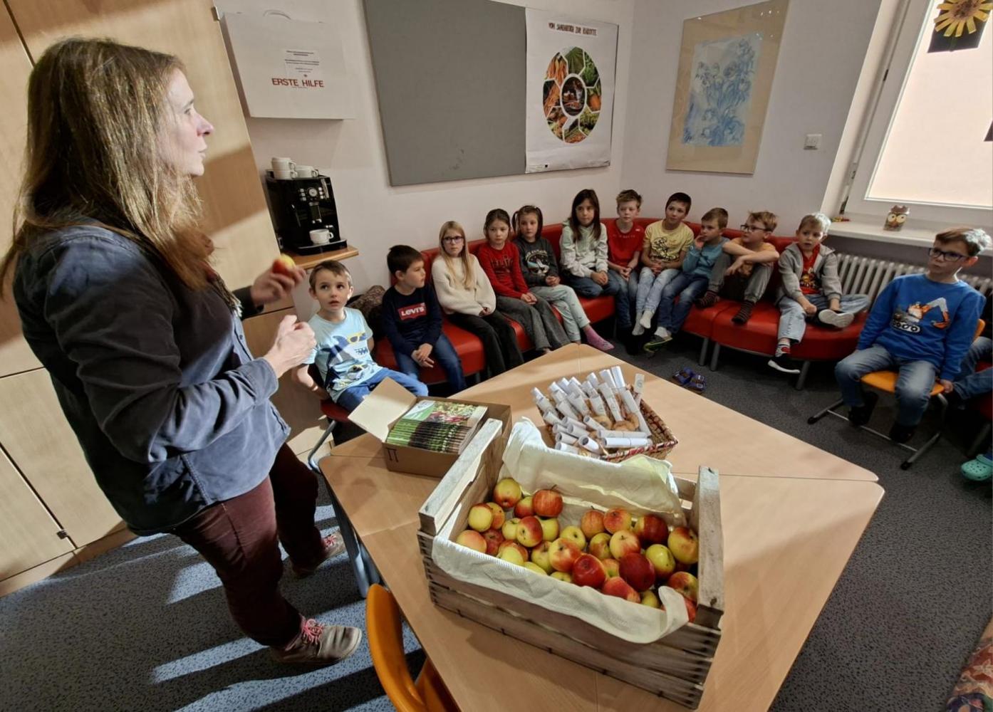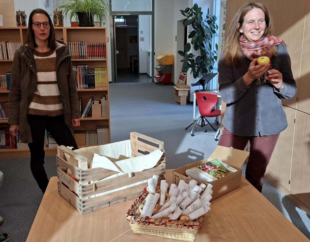 Am Freitag, 14. November 2025, überraschen Brigitte Außerlechner und Anna Ruepp unsere Kinder und uns Lehrpersonen mit herrlich duftenden, frischen Äpfeln - pünktlich zum Tag des Apfels.