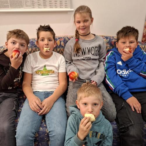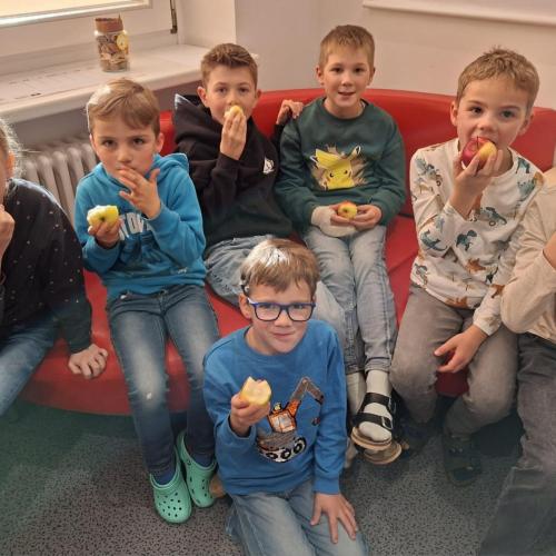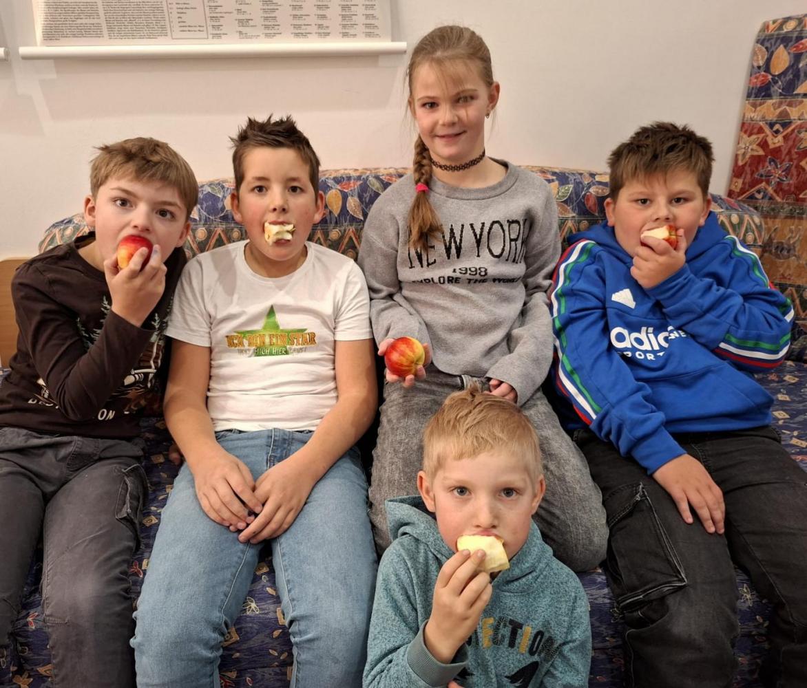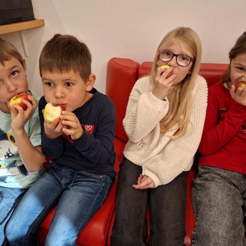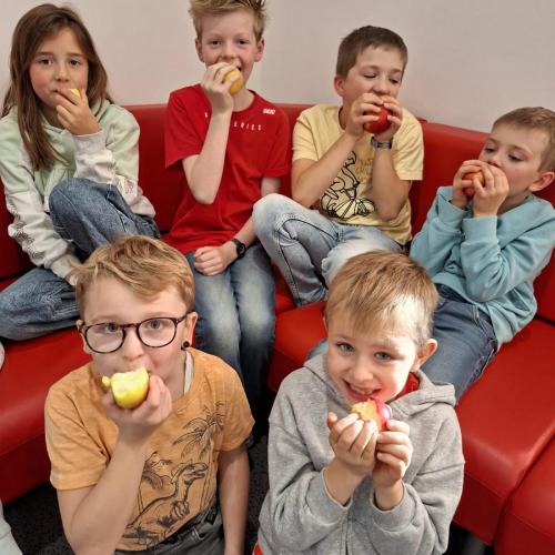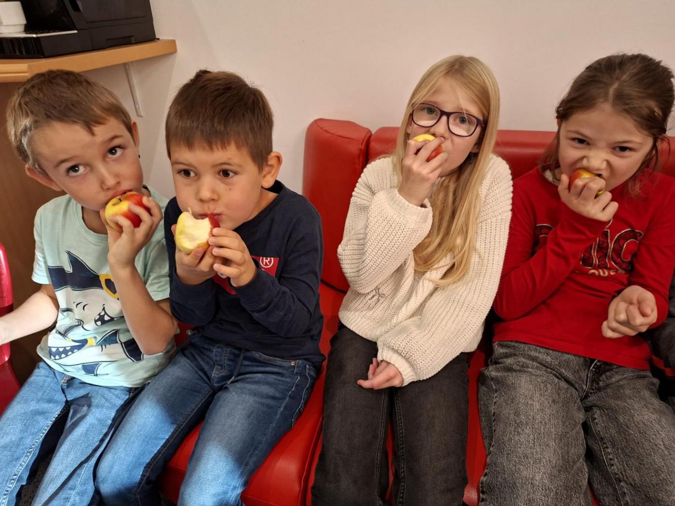Am Freitag, 14. November 2025, überraschen Brigitte Außerlechner und Anna Ruepp unsere Kinder und uns Lehrpersonen mit herrlich duftenden, frischen Äpfeln - pünktlich zum Tag des Apfels.