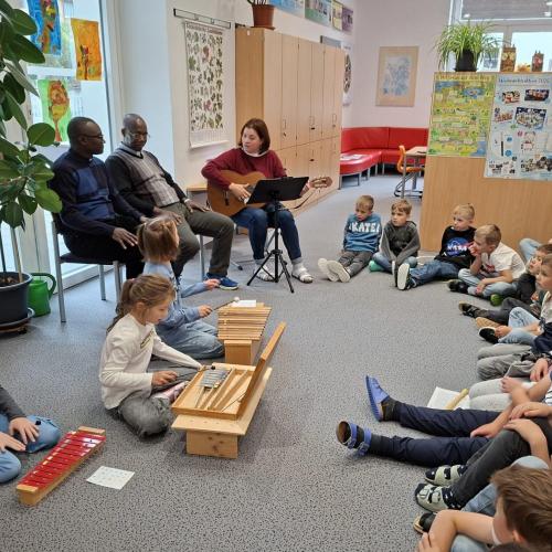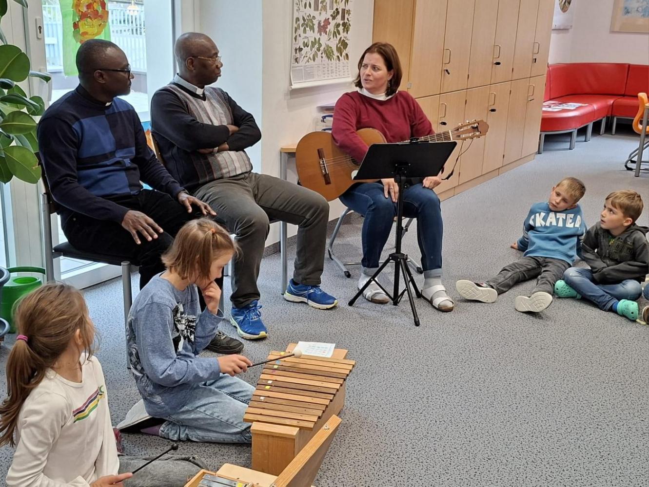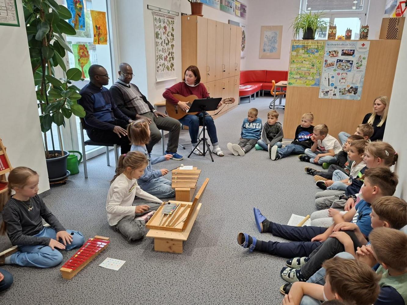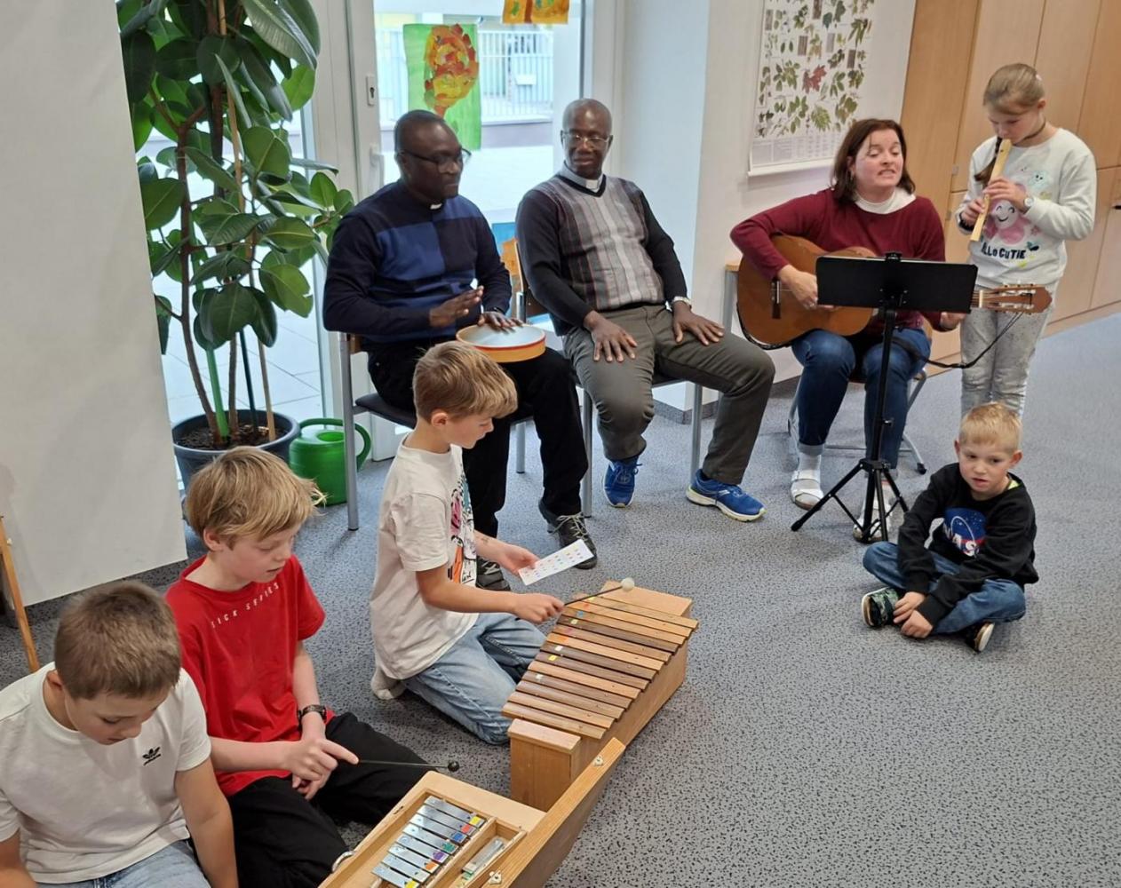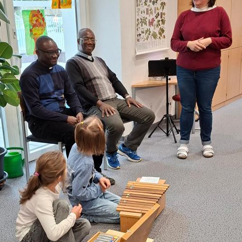 Bei unserem Schlusslied wurden wir von Pfarrer Hèritier auf der Trommel 🪘 recht musikalisch und rhythmisch unterstützt. Ein Platz in unserem Schulorchester ist ihm jederzeit sicher. 😉