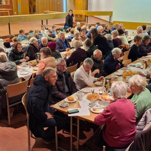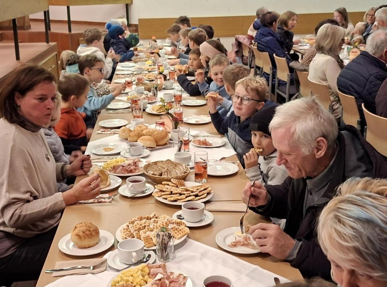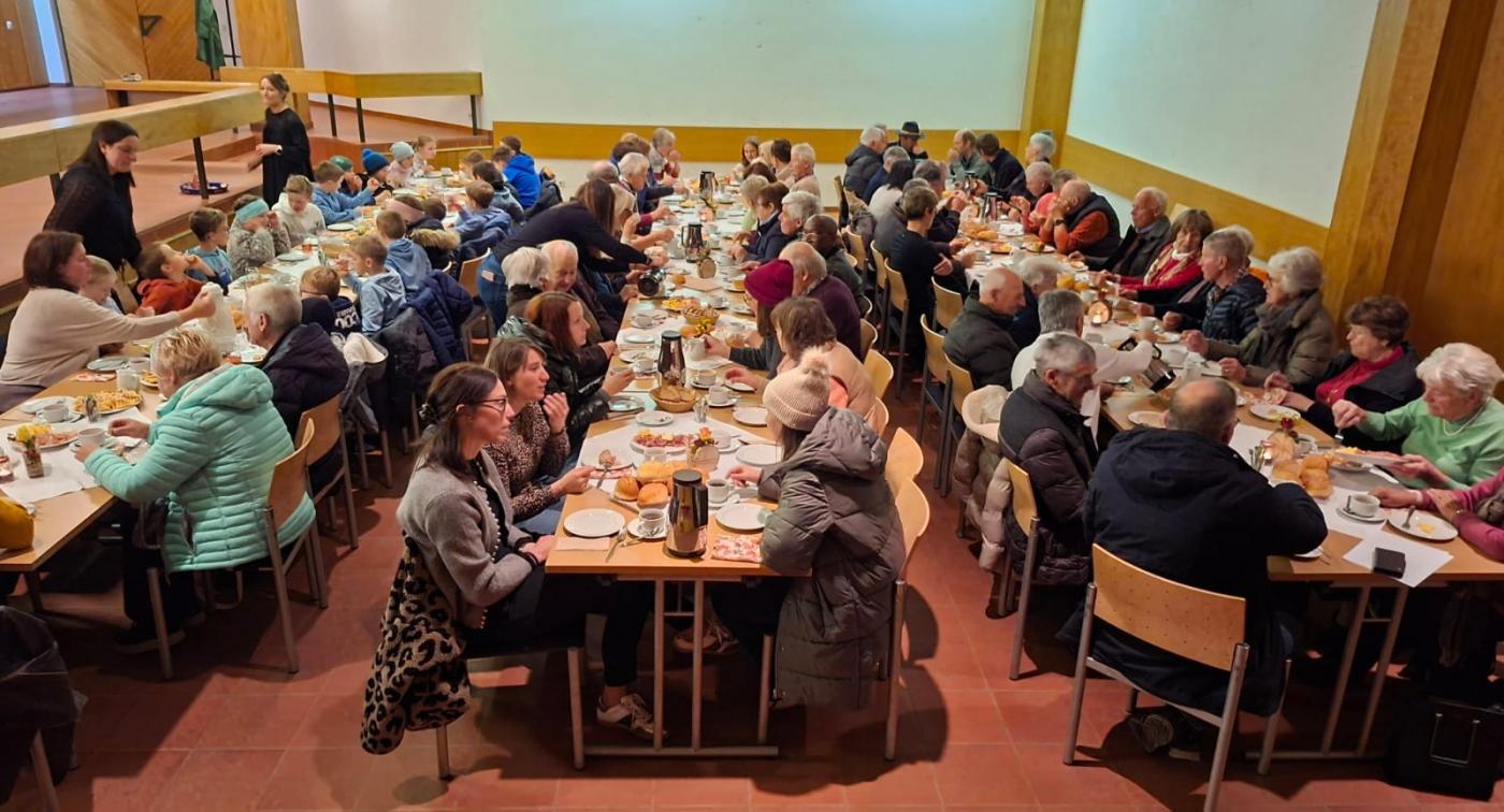 Ganz klar, dass wir uns nach diesem Einsatz besonders auf die "Neina"-Jause der Bäuerinnen im Gemeindesaal freuen. Bei Niggilan und Waffeln, Speck und Käsewürfeln mit Brot können wir uns gut stärken. Wir genießen das gemeinsame Jausnen mit vielen Kartitschern in vollen Zügen.