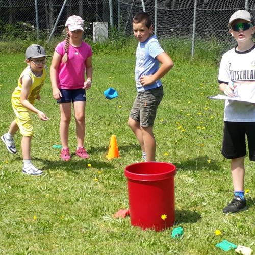 Die Stationsleiter notierten sich Weiten und Zeiten der Teilnehmer.