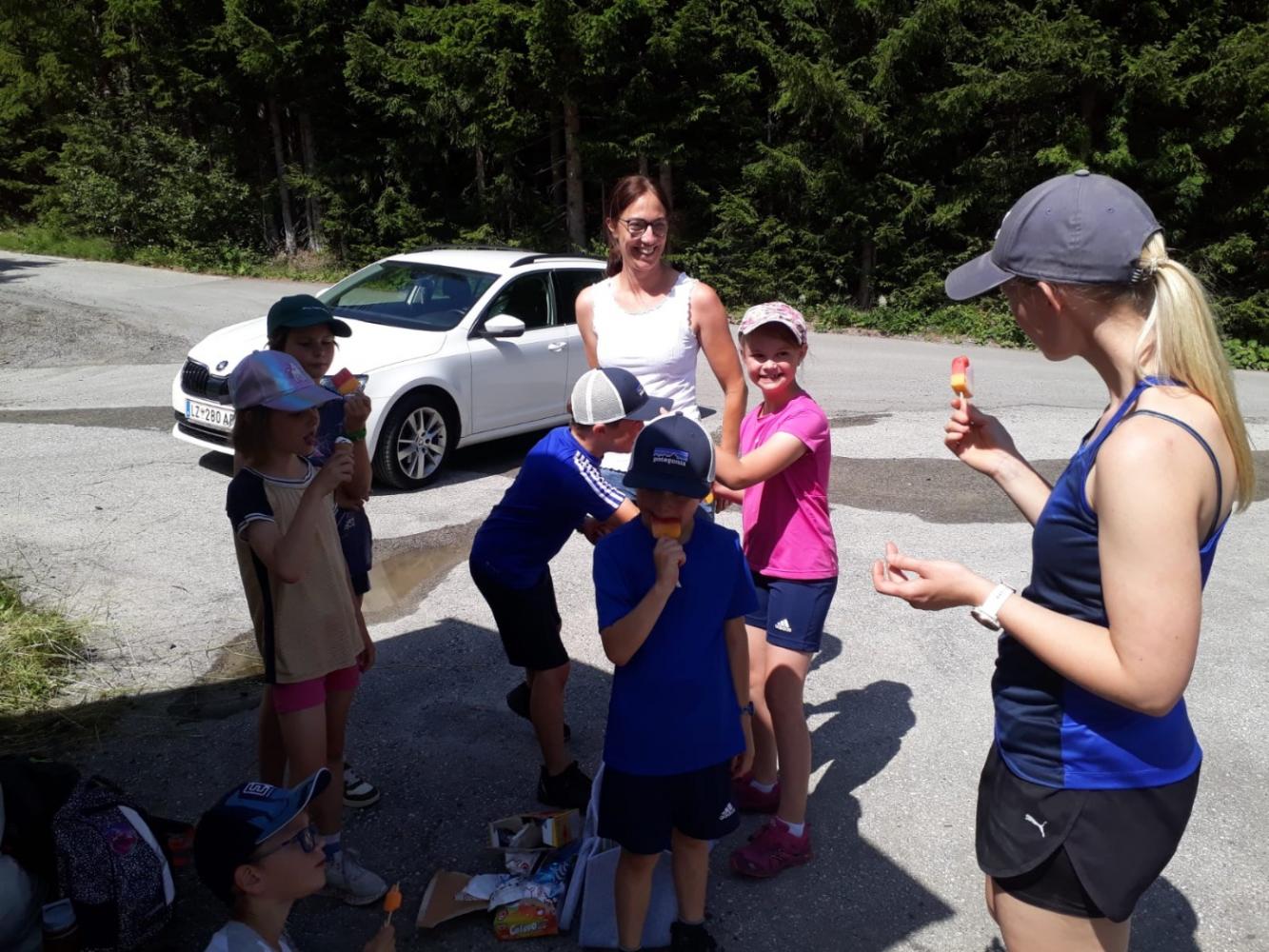 Zu guter Letzt kam auch noch Elternvertreterin Katrin Herrnegger mit einem Eis für jedes Kind im Gepäck. Eine wunderbare Abkühlung - herzlichen Dank dafür!