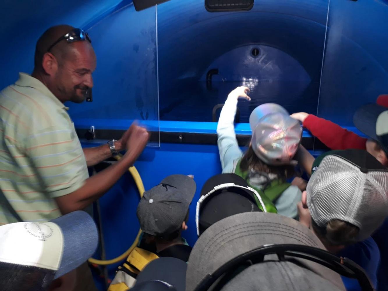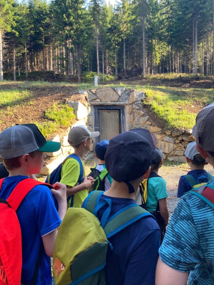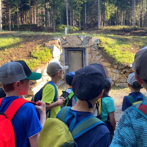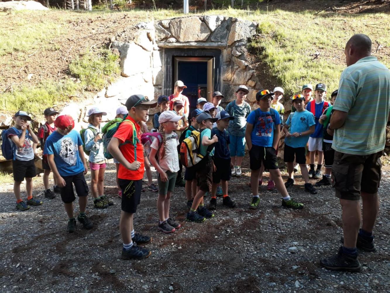 Von dort gingen wir zu Fuß den Weg entlang bis zum Hochbehälter Rauchenbach. Franz Schraffl, unser Gemeindearbeiter, der alle Wasseranlagen in Kartitsch betreut, erzählte uns spannend, ausführlich und kompetent über den Wasserspeicher und beantwortete viele Fragen.