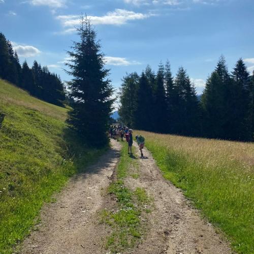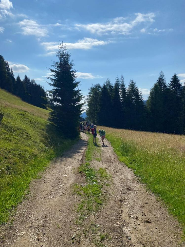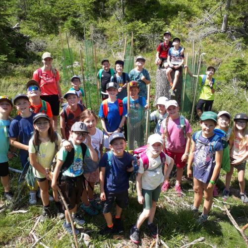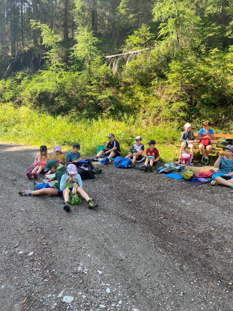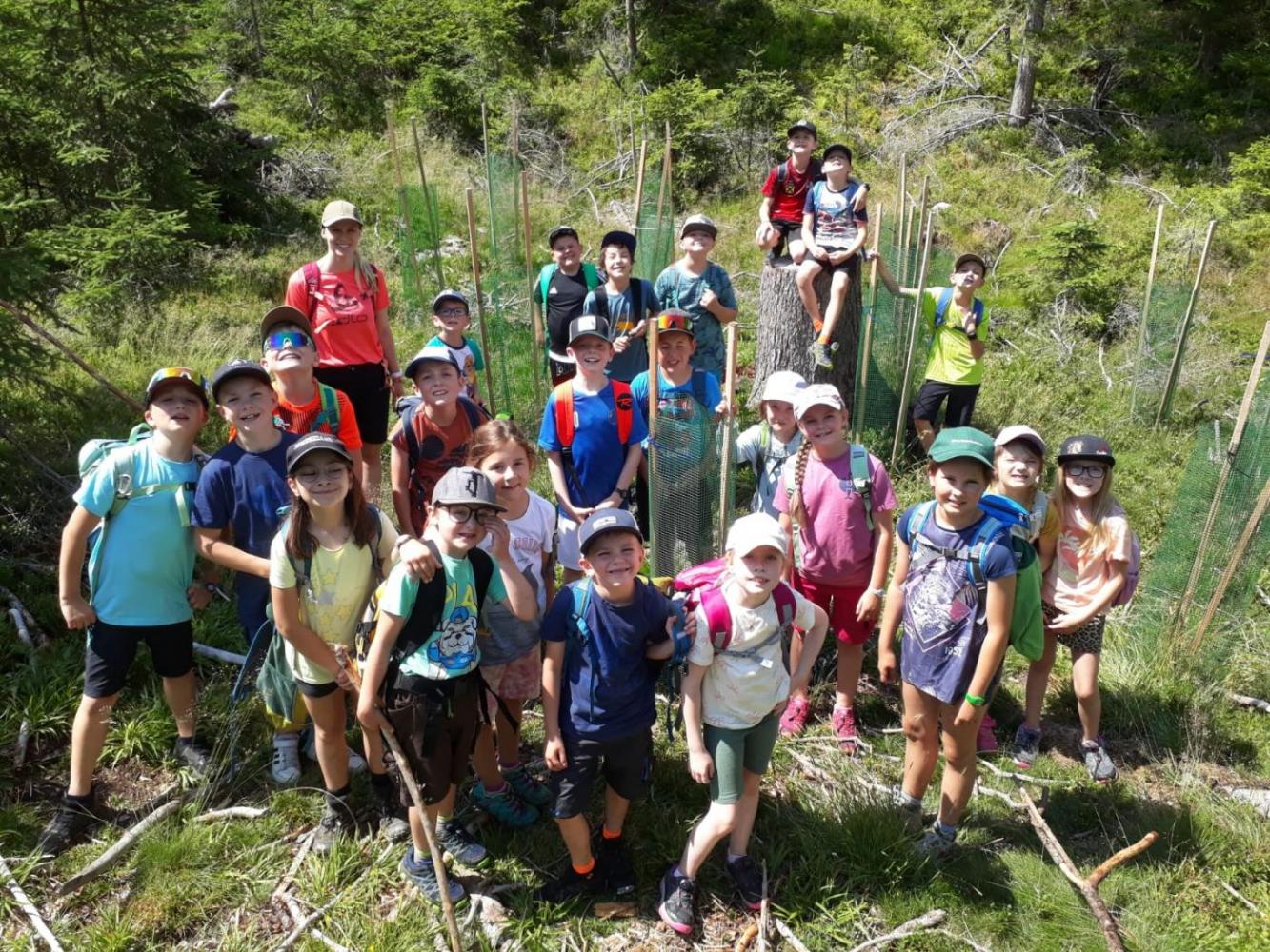 Nun gingen wir zu Fuß weiter zur "Grandler Schupfe", wo wir jausneten. Anschließend marschierten wir ein Stück weiter und unser Lehrer erzählte uns, dass am Tannensattel die große und die kleine Gail einspringen. Auch eine Legende durfte nicht fehlen. Wir wanderten den Weg entlang weiter zurück nach Rauchenbach und dann an der kleinen Gail entlang. Einen kurzen Abstecher machten wir unterwegs noch bei unseren im Frühjahr eingepflanzten Bäumchen - mitten im Wald. Schließlich kamen wir im Dorf an und als Belohnung spendierte uns Ebner Helene ein köstliches Eis. Herzlichen Dank auch dafür!