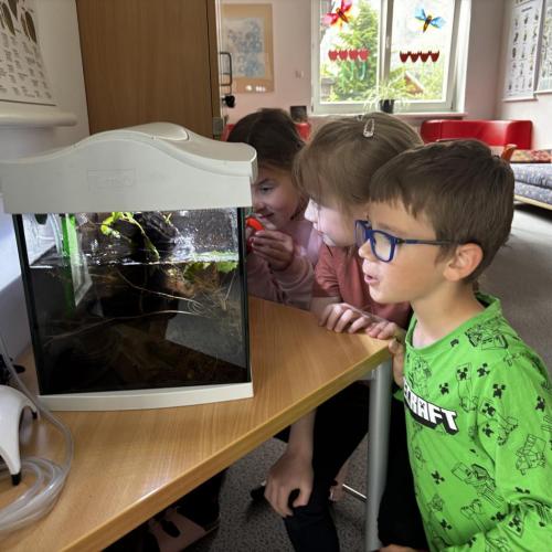 Unsere Neuzugänge - 12 Kaulquappen von Claudia Ebner 06. Juni 2025 Alles wächst und gedeiht - die Froschentwicklung schreitet voran:Unsere Minifrösche brauchen neues Futter: frische Fliegen - gefangen im heimischen Stall! 🪰