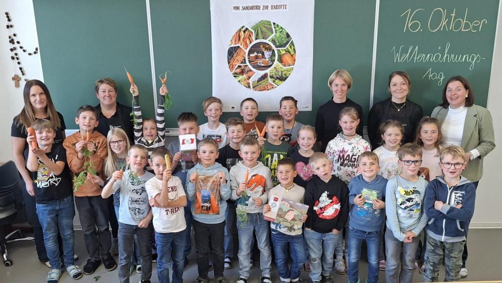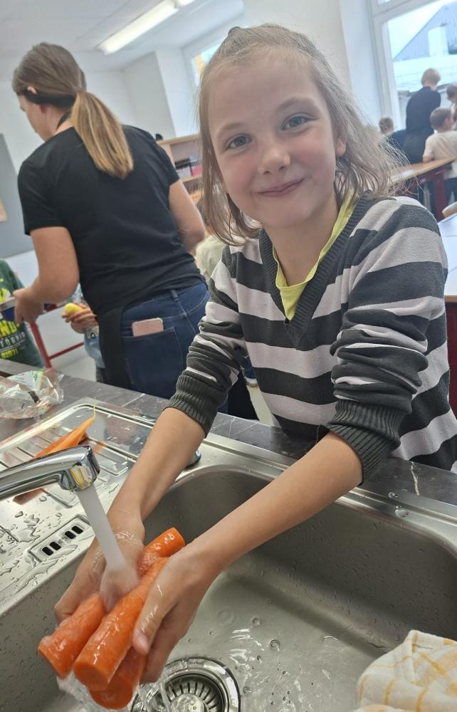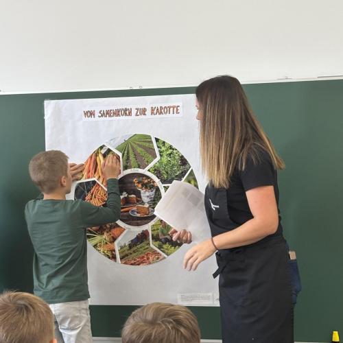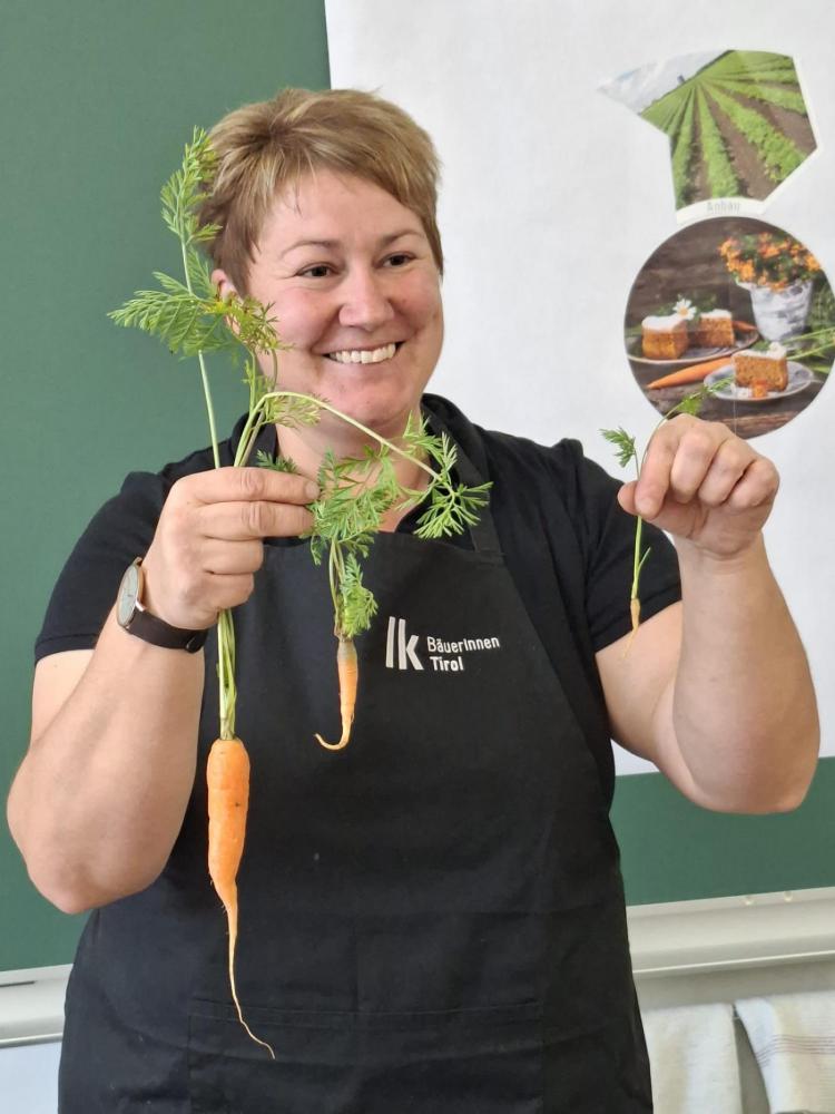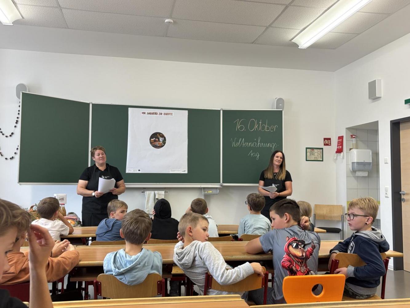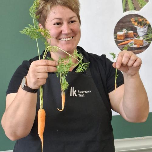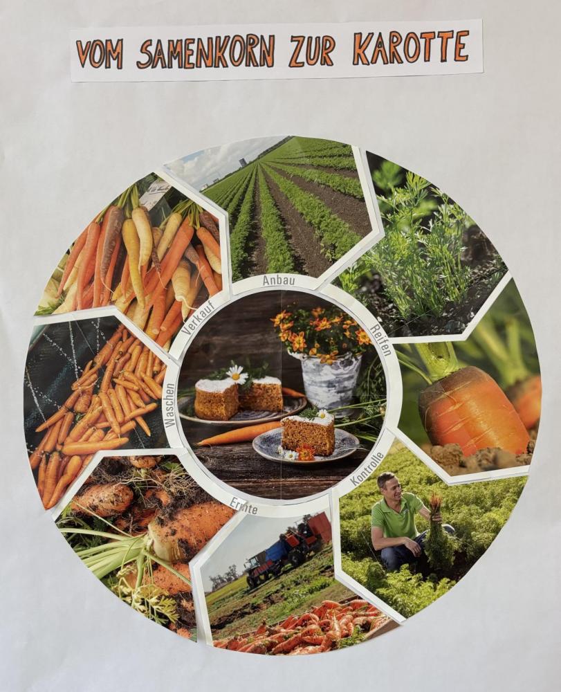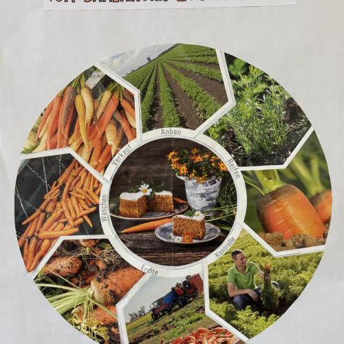 Und am Tag darauf besuchen uns die Bäuerinnen Rosa, Melanie, Stefanie und Vroni und bringen uns viel Wissenswertes über die Karotte bei.