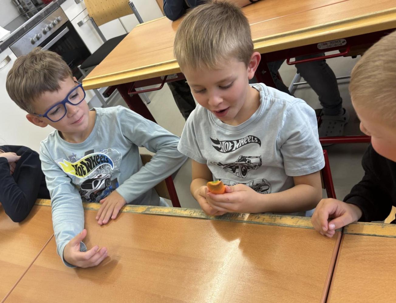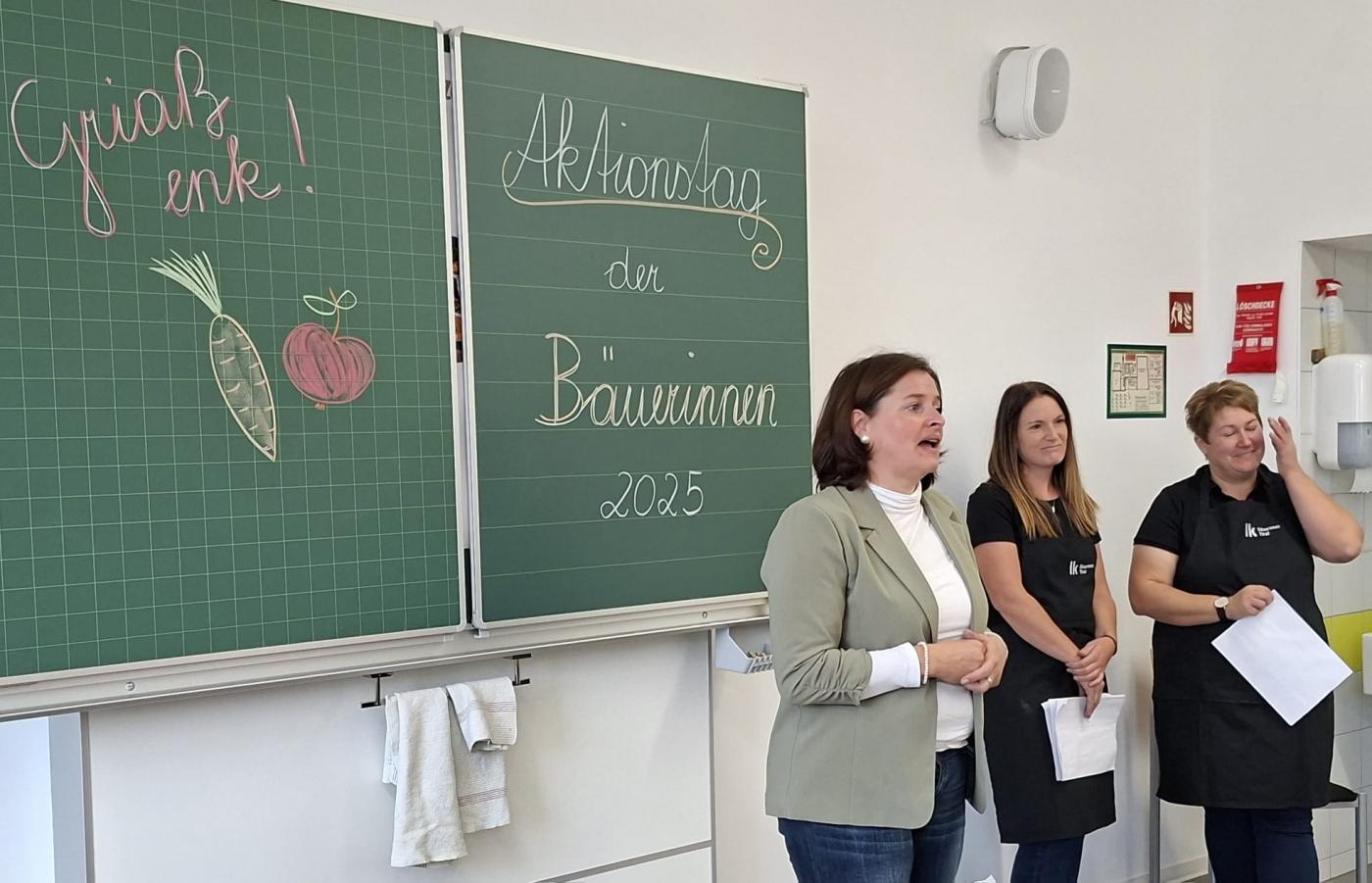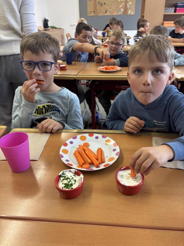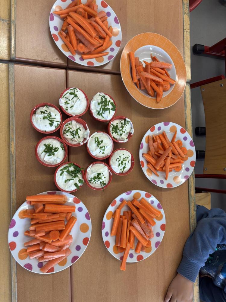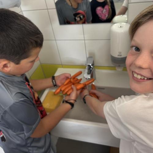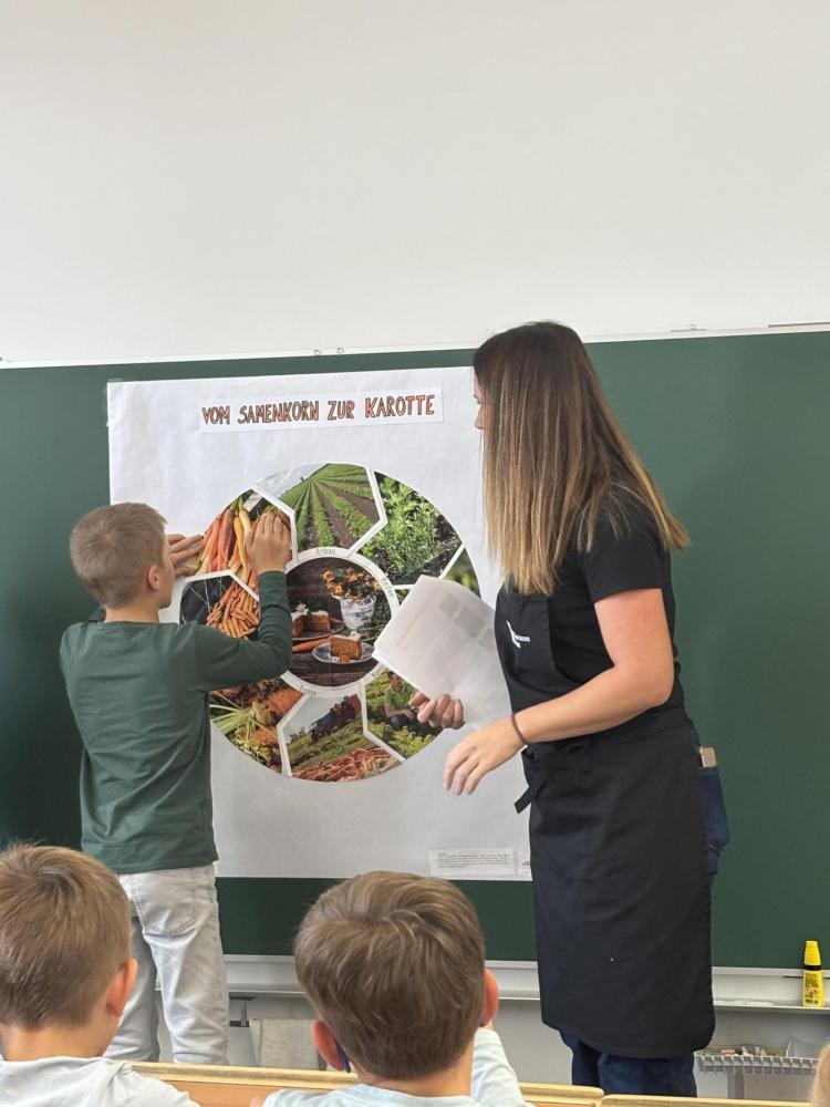 Und am Tag darauf besuchen uns die Bäuerinnen Rosa, Melanie, Stefanie und Vroni und bringen uns viel Wissenswertes über die Karotte bei.