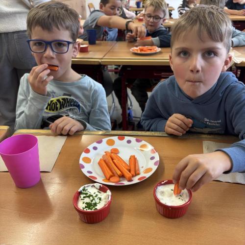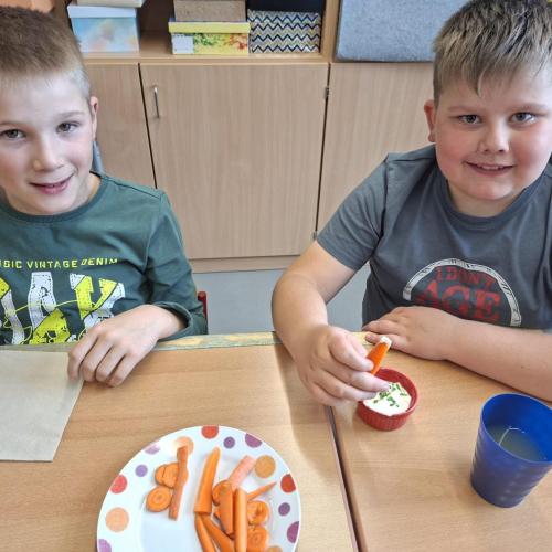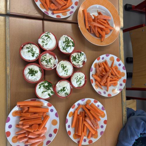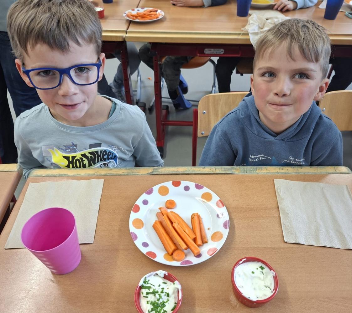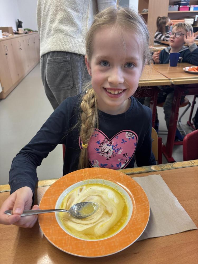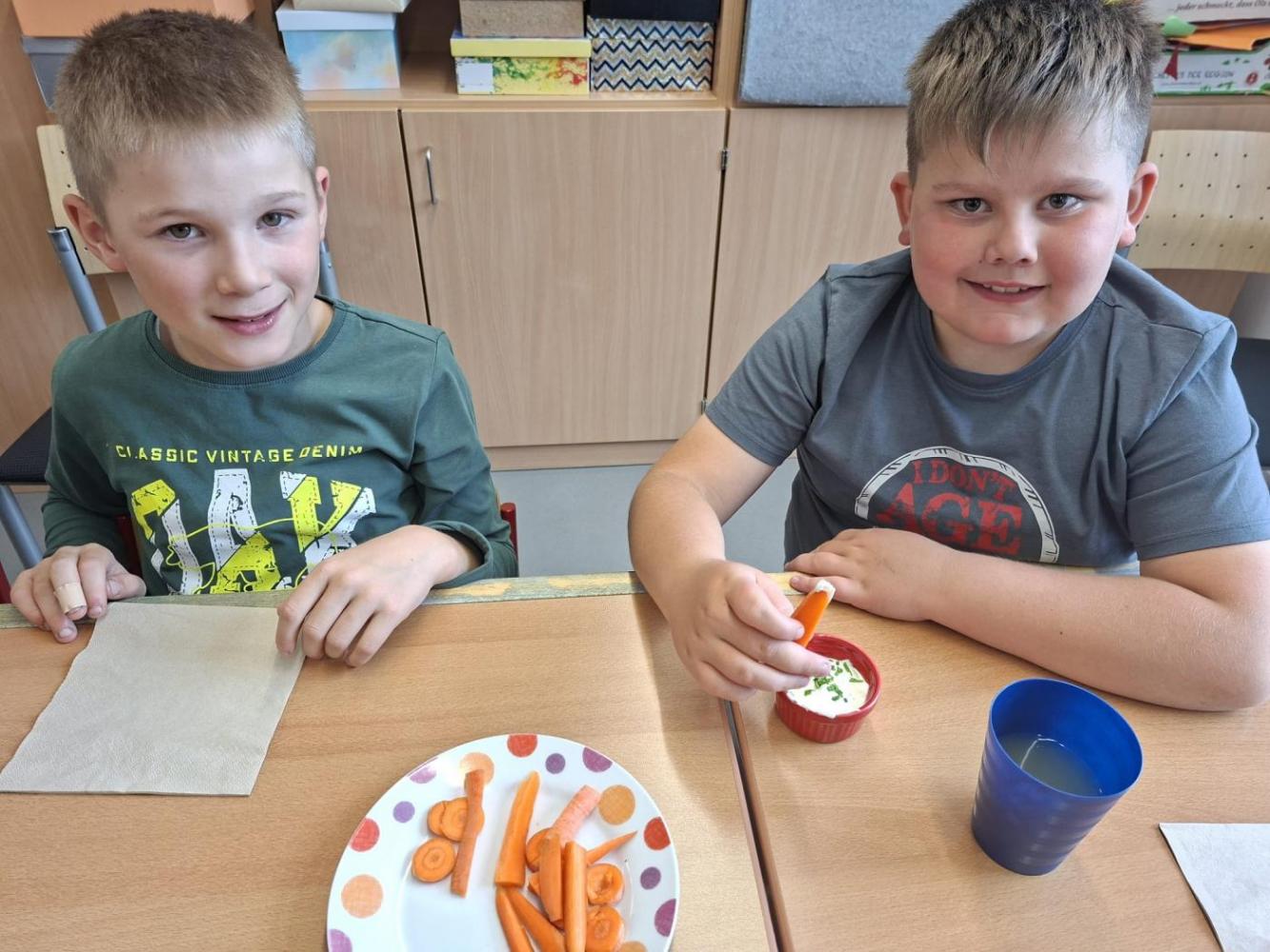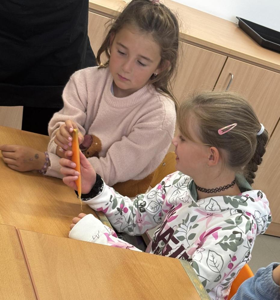 Und am Tag darauf besuchen uns die Bäuerinnen Rosa, Melanie, Stefanie und Vroni und bringen uns viel Wissenswertes über die Karotte bei.