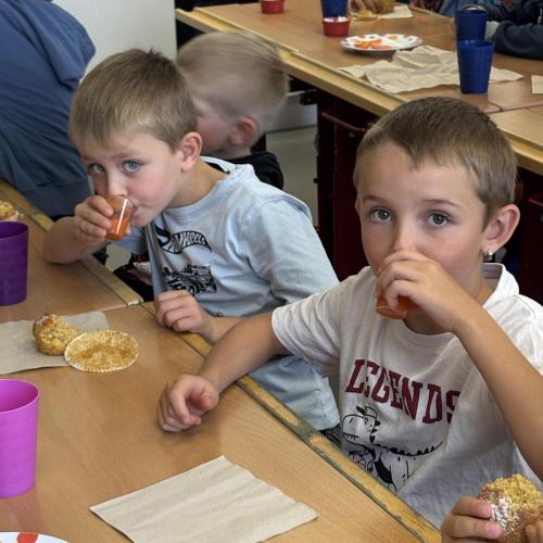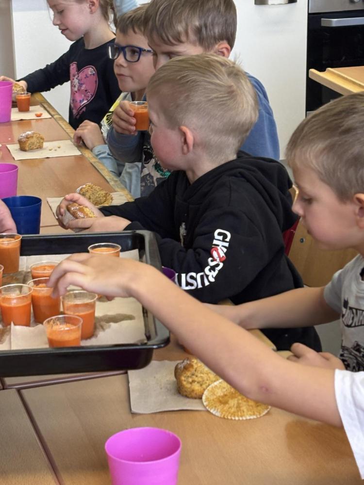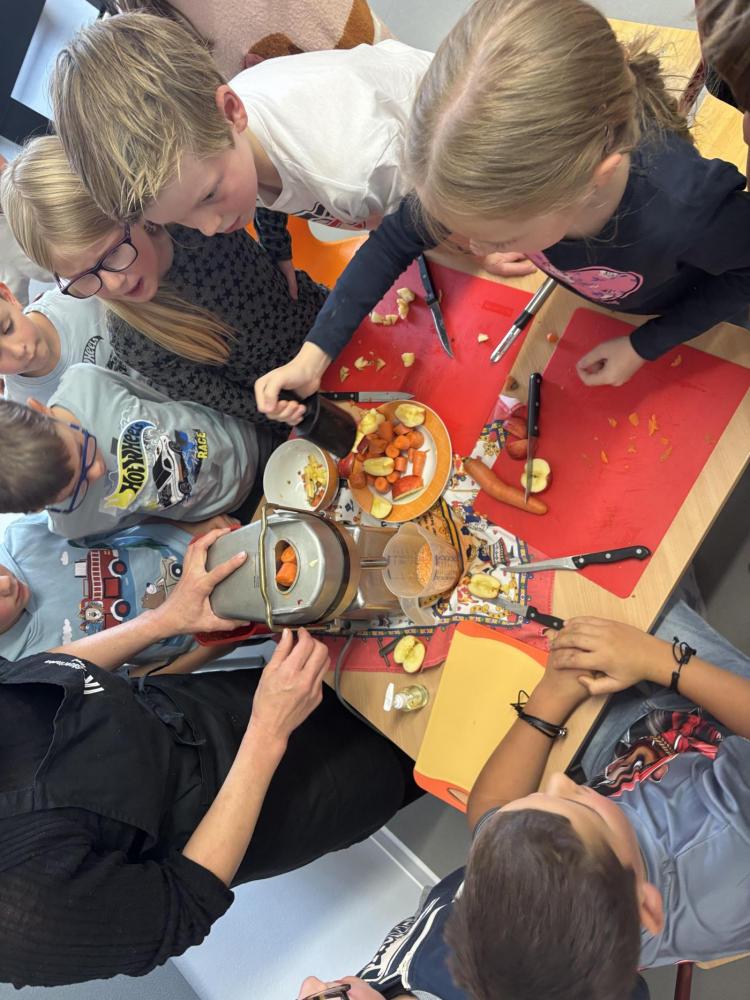 2 Unterrichtsstunden sind wie im Flug vergangen und unsere Bäuche sind voll mit gesundem. selbst zubereitetem Essen und Getränken.