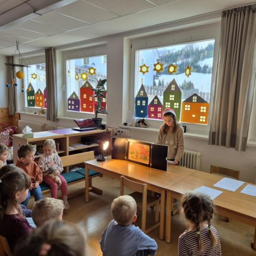 Ein besonderes Highlight war es, auch den Kindergartenkindern die Geschichten mit Kamishibai vorzulesen.