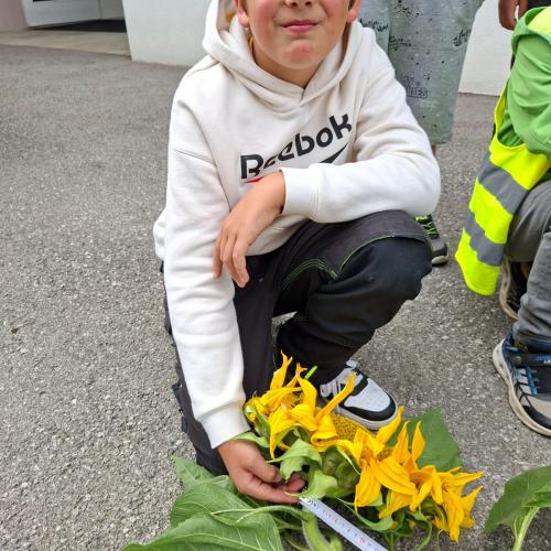 Jedes Kind darf auch eine Sonnenblume mitnehmen - die Ernte ist reichlich.