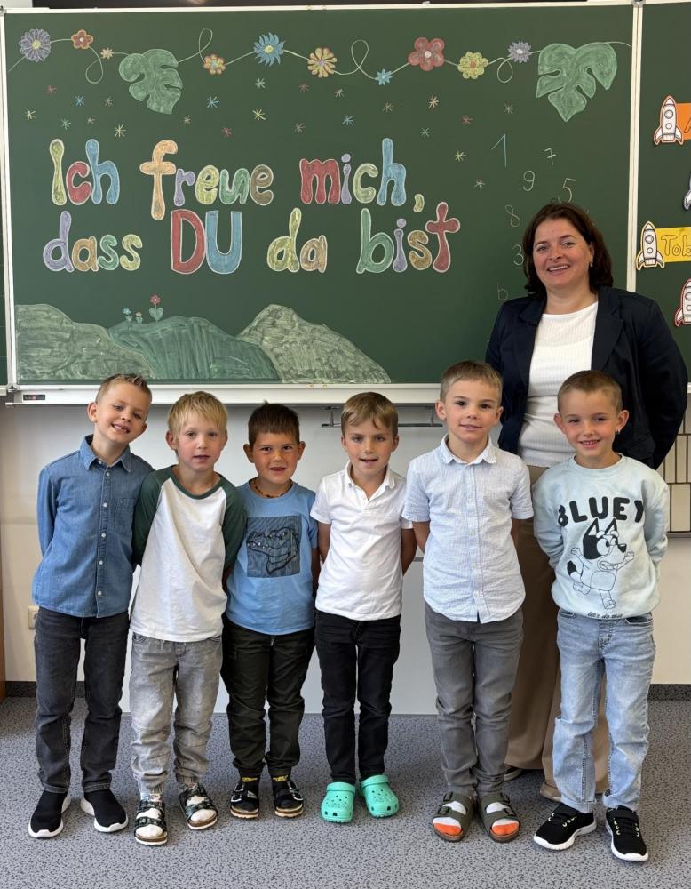 Wir begrüßen Tobias, Max, Klaus, Moritz, David und Leo mit einem Willkommenslied und der Ö3-Schultüte in unserer Schulgemeinschaft.